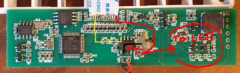 On the above image the red connections are the ~4V. Black is ground and the yellow one is the click signal coming from the HV PSU board. Doubly check you have the ~4V on that pin of the ribbon and to the right side of R45. When I'm back home in a week or so I can check further and find where that ~4V goes over near the LCD. Also check R45 and make sure you are getting around 2.2 ohms and it isn't open circuit. Also might be worth checking pins 2 & 3 and see if you are getting around 2V that I was getting when the clicks were enabled in the menu.